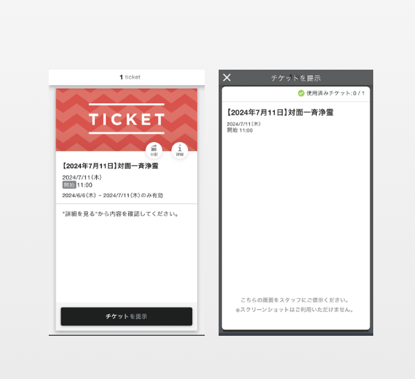 ※当日来られなかった場合は【電子チケット】が無効となりますのでご注意ください。